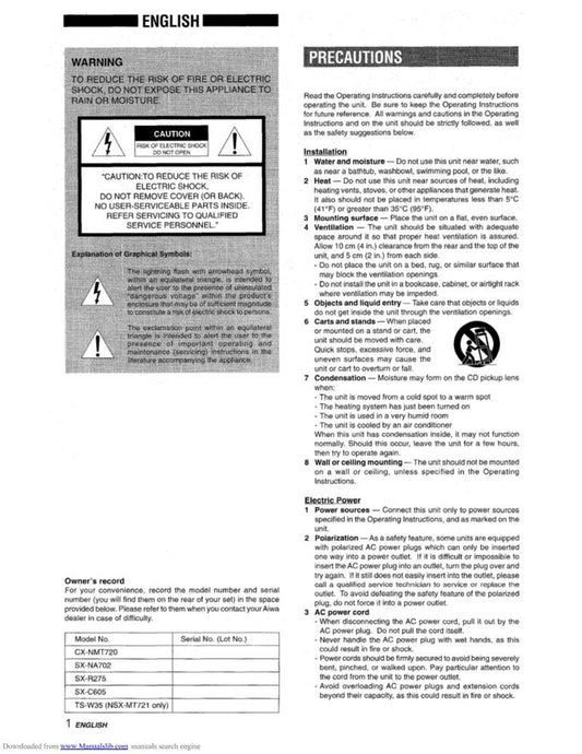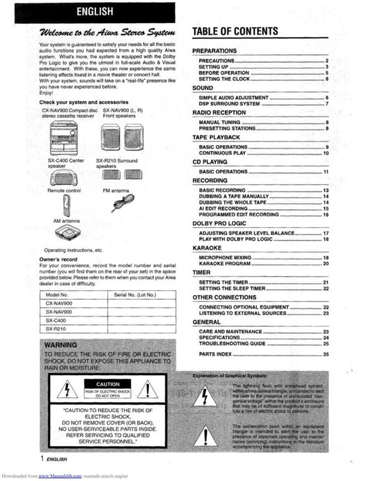 Access Aiwa operating and service manuals in PDF format at Manuali. Find detailed guides for setup, troubleshooting, and maintenance to keep your Aiwa products running smoothly. Instant downloads available for easy access to essential information. Browse our collection today!