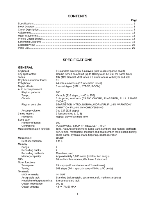 Casio CTK-601 Keyboard Piano Service Manual (Pages: 24)