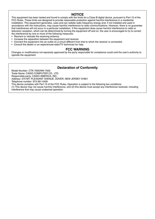 Casio CTK-7000 & WK-7500 Keyboard Piano Owner's/ User Manual (Pages: 168)