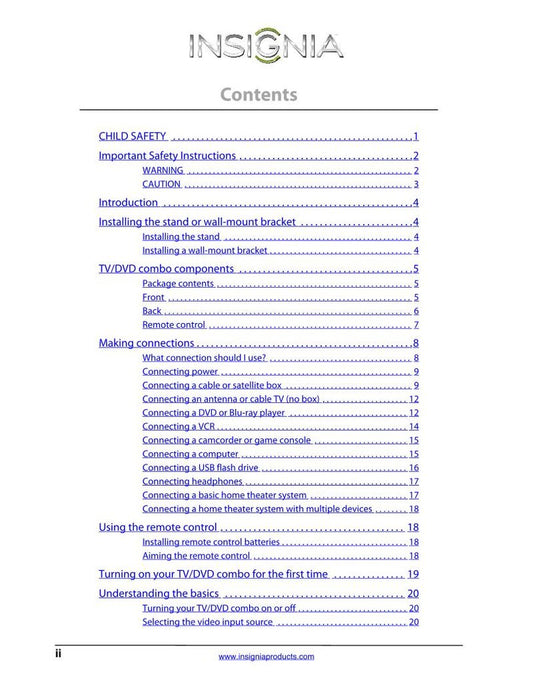 Insignia NS27HTV DVD/VCR Combo Player Operating Manual