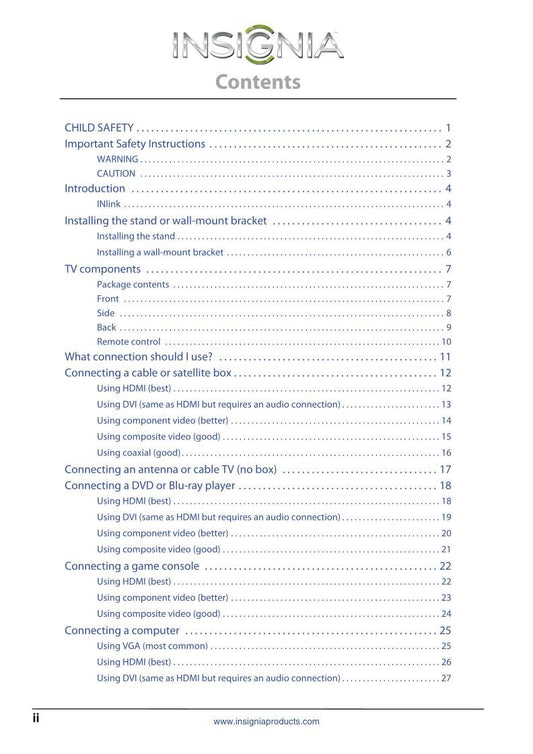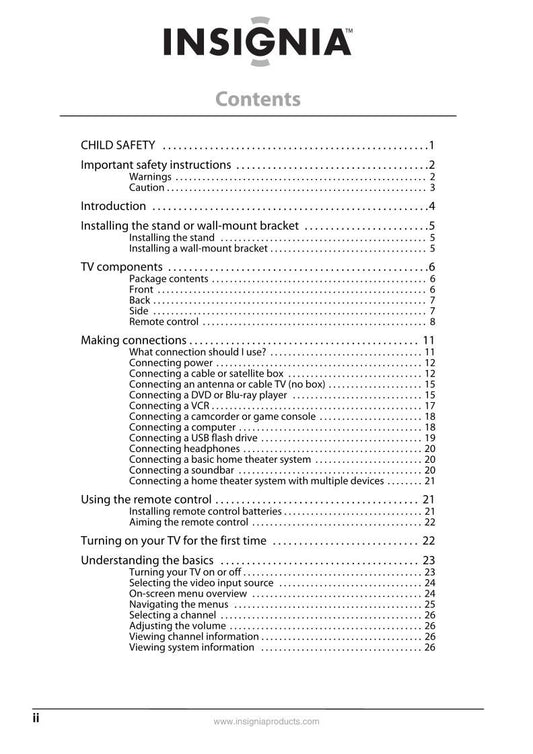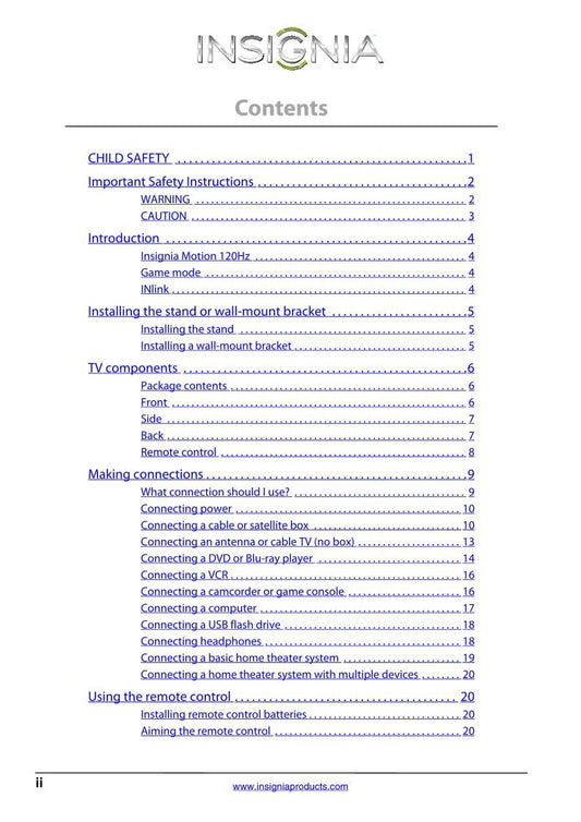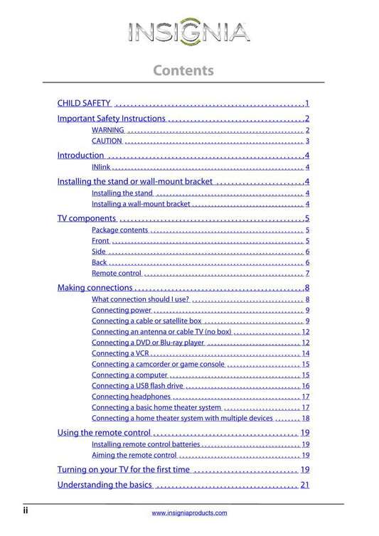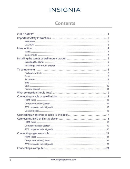 Insignia NS32 L 550A11 NS37 E 37AAZNKW1BKNNX TV Operating Manual