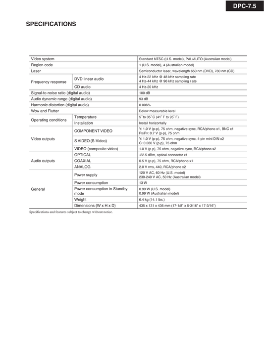 Integra DPC-7.5 DVD Player Service Manual (Pages: 87)