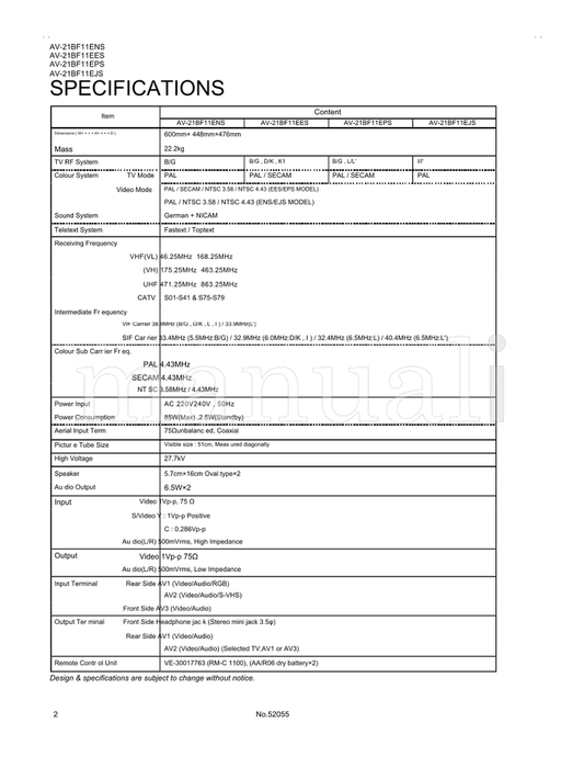 JVC AV-21BF11ENS AV-21BF11EES AV-21BF11EPS AV-21BF11EJS 52055 (20 pages) TV Service Manual