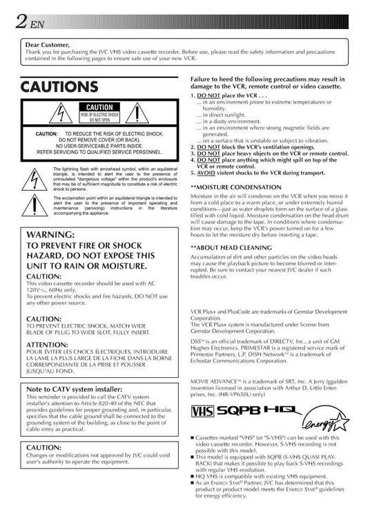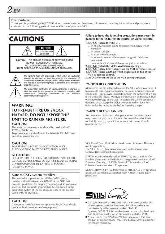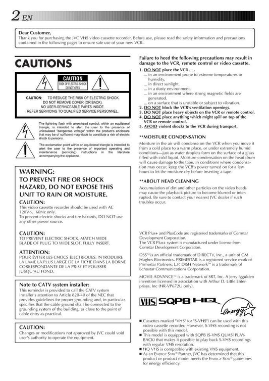 JVC HRVP472U HRVP672U VCR Operating Manual