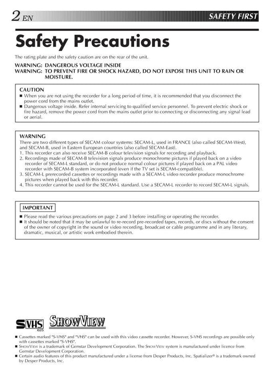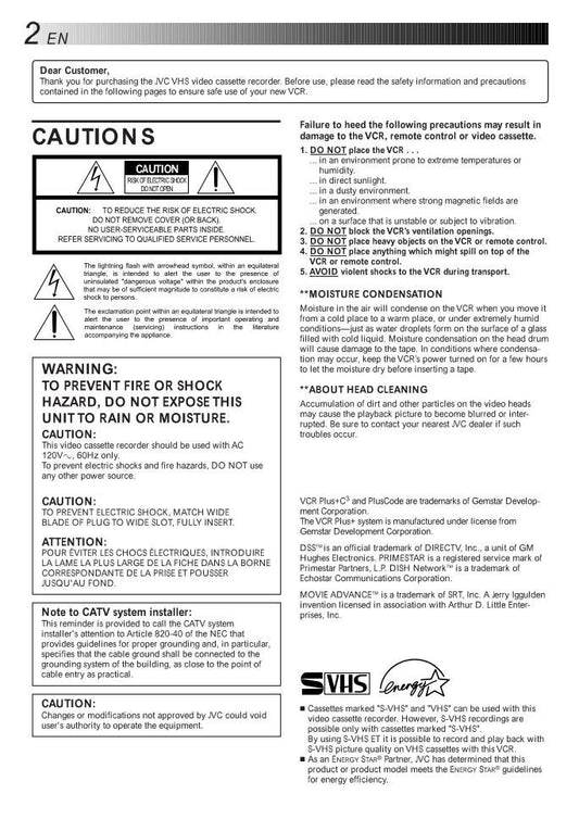 JVC HRS5100U HRS5400U VCR Operating Manual