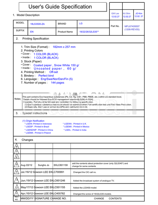 LG 19LS4R 22LS4R MFL34797012 (64 pages) TV Operating Manual
