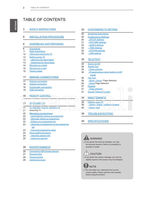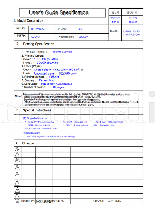 LG 22LK230-TA 3880TVZ021H 185mm 22LK2** MFL66100470 (134 pages) TV Operating Manual