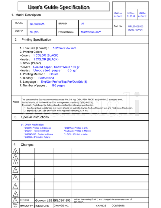 LG 22LS3500-ZA EKLC201853 32LS35** MFL67409503 (198 pages) TV Operating Manual