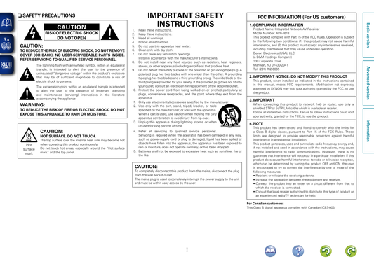 Denon AVR-1613 AV Receiver Owner's/ User Manual (Pages: 131)