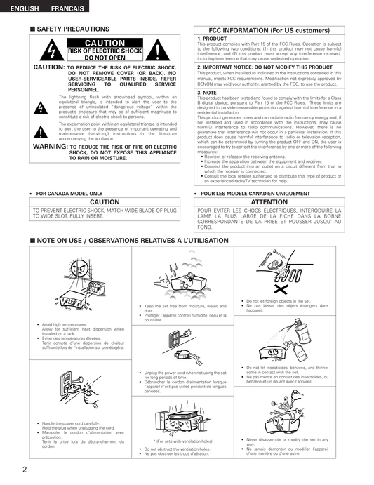 Denon AVR-1610 AV Receiver Owner's/ User Manual (Pages: 67)
