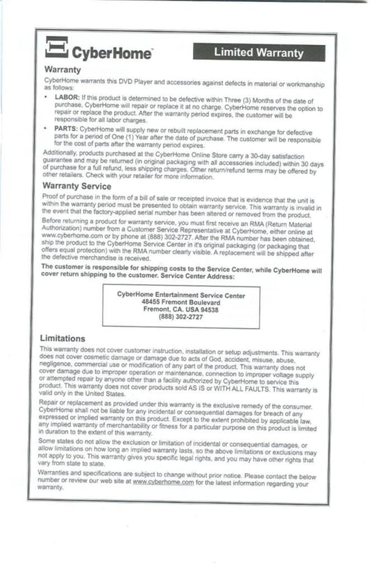 CyberHome CHDVD320OM DVD Player Operating Manual