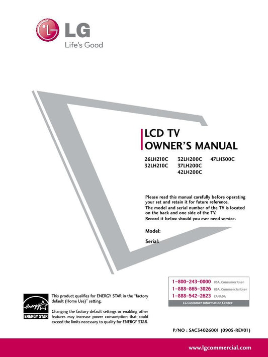 LG 26 LD 320H 340H 32 310H TV Operating Manual