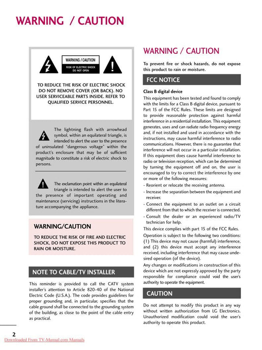 LG 38289U0559C 15LC1R 20LC1R (36 pages) TV Operating Manual