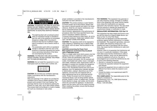 LG BD390 Blu-Ray DVD Player Operating Manual