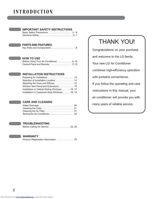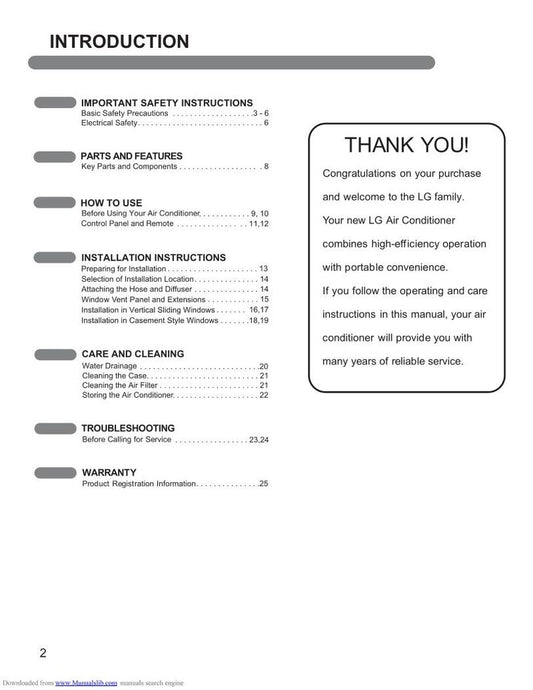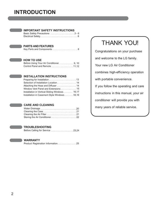 LG LP1017 WSR Air Conditioner Unit Operating Manual
