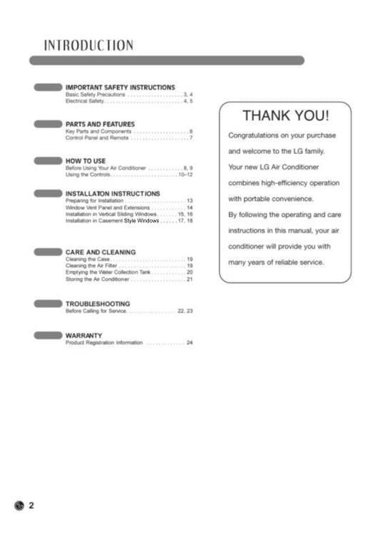 LG LP1417 GSR Air Conditioner Unit Operating Manual