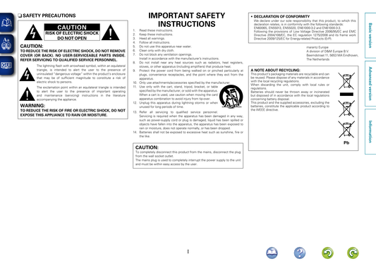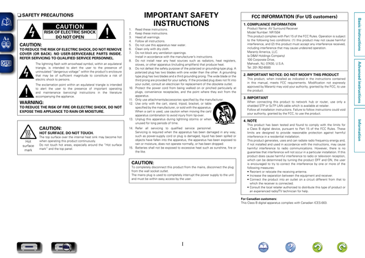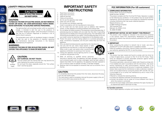 Marantz NR1603 Audio/Video Receiver Operating Manual