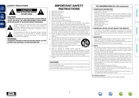 Marantz NR1510 Audio/Video Receiver Operating Manual
