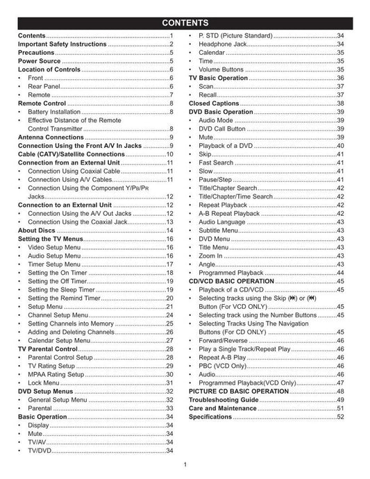 Memorex MVD1301 TV/DVD Combo Operating Manual