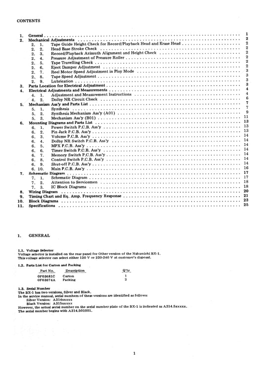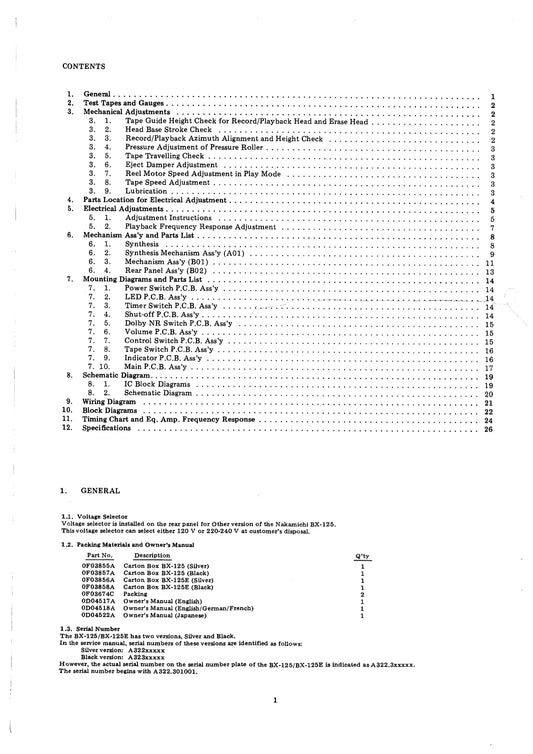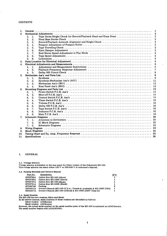 Nakamichi BX-1 Two Head Cassette Deck Service Manual (Pages: 26)