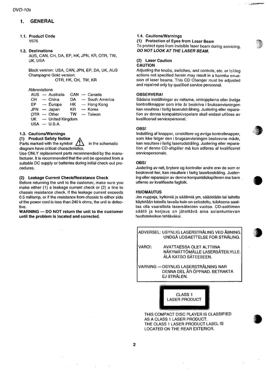 Nakamichi DVD-10S DVD Player Service Manual (Pages: 42)