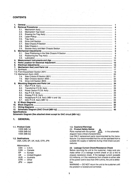 Nakamichi MB-1S, MB-2S & MB-3S MusicBank CD Player Service Manual (Pages: 49)