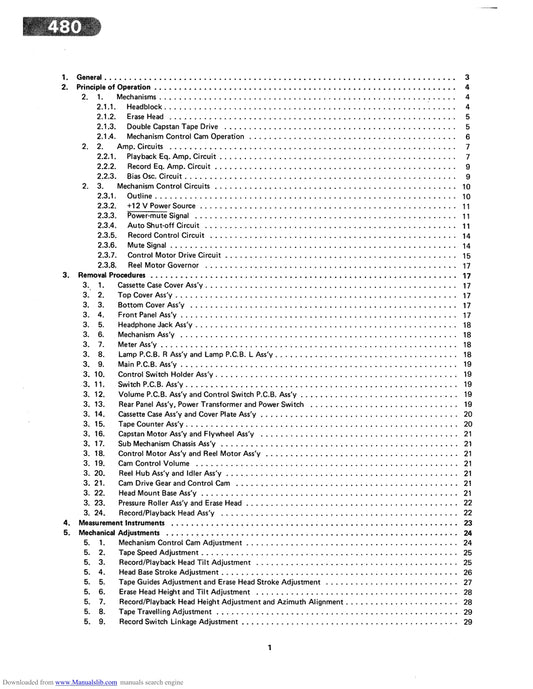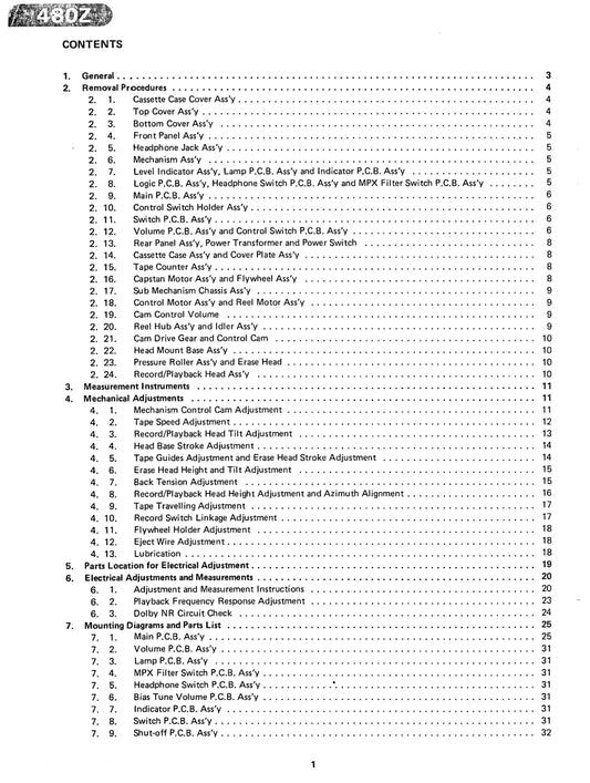 Nakamichi Model 480 Two Head Cassette Deck Service Manual (Pages: 64)