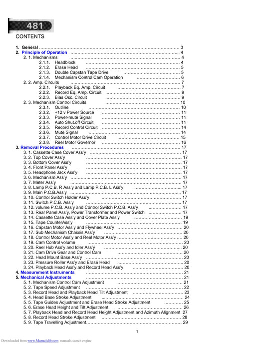 Nakamichi Model 481 Discrete Head Cassette Deck Service Manual (Pages: 66)