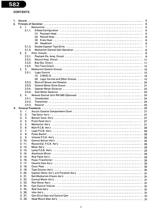 Nakamichi Model 582 Discrete Head Cassette Deck Service Manual (Pages: 121)