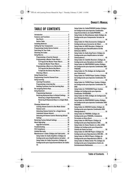 One For All URC6011/6012/6017OM Universal Remote Control Operating Manual