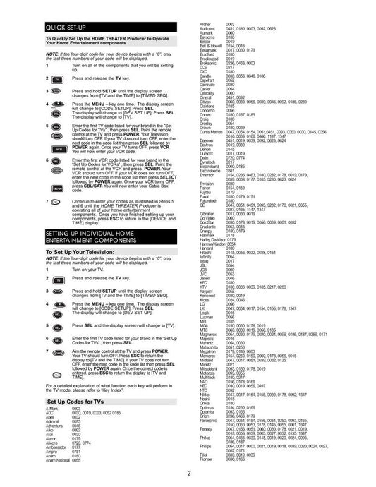 One For All URC9800 & Codes Universal Remote Control Operating Manual