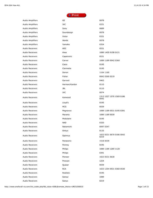 One For All URC6800 & Codes Universal Remote Control Operating Manual