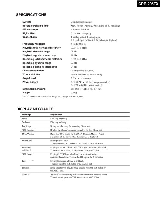 Onkyo CR-255 & CS-255 CD Player Owner's/ User Manual (Pages: 92)