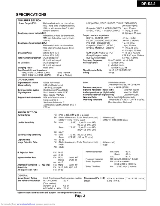 Onkyo DR-S2.2 DVD Player/ Receiver Service Manual (Pages: 88)