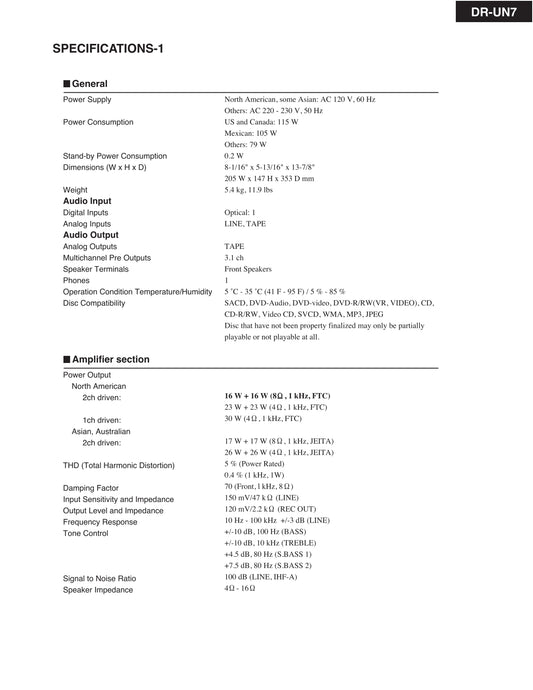 Onkyo DR-UN7 DVD Player/ Receiver Service Manual (Pages: 92)