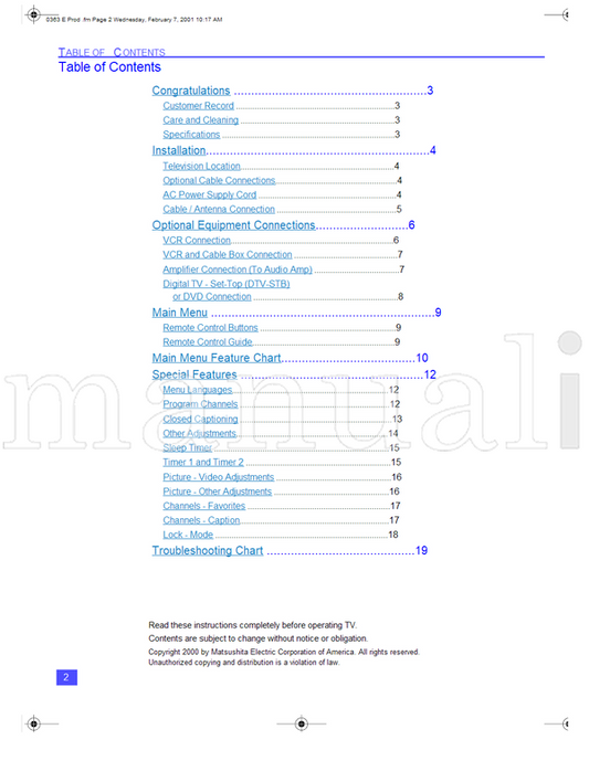 Panasonic CT-20D12D CT-20G7D CT-27G7D CT-27G7DU CT-27G7SD CT-27G7SDU (36 pages) TV Operating Manual