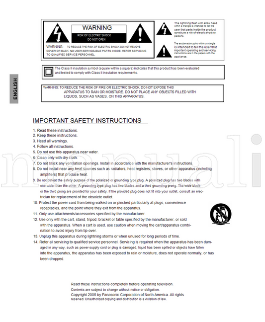 Panasonic CT-2701 (25 pages) TV Operating Manual