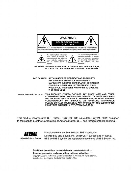 Panasonic PT-61G46 I-QB2AA0109-1 38 pages TV Operating Manual