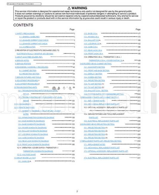 Panasonic PT-44LCX65-K PT-52LCX65-K PT-61LCX65-K MKE0505852C1 (236 pages) TV Service Manual