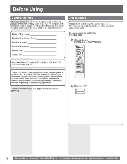 Panasonic PT51G50 PT51G52 PT61G52 TV Operating Manual