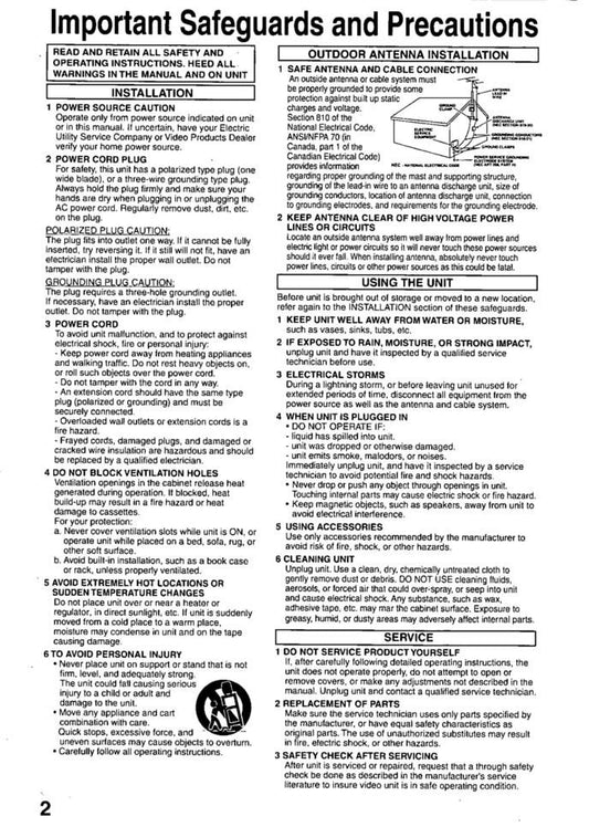 Panasonic PVC1321 PVC1331 PVC1341 TV/VCR Combo Operating Manual