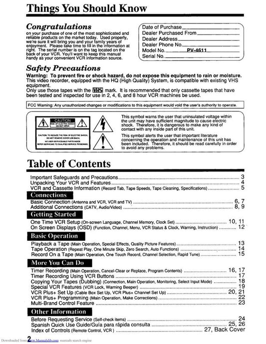 Panasonic PV-DM2794 (84 pages) TV Operating Manual