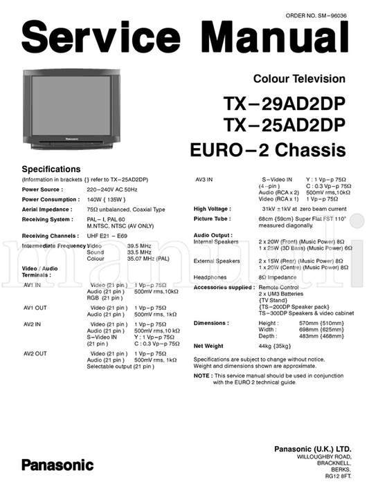 Panasonic TX-25AD2DP TX-29AD2DP (49 pages) TV Service Manual