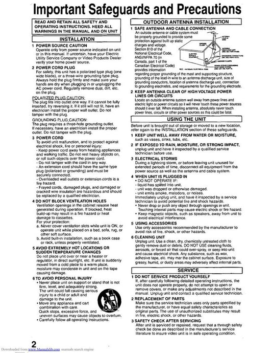 Panasonic VV1310 VV2000 VV1300 Audio System Operating Manual