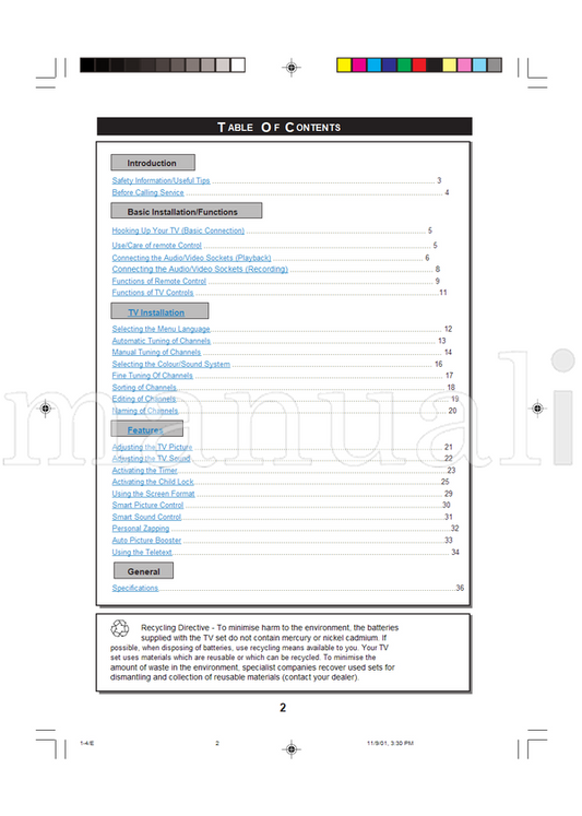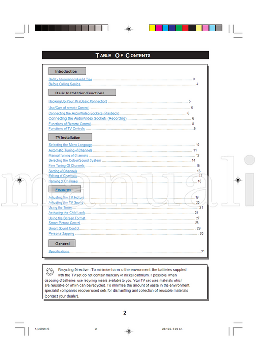 Philips 21PT2001 (29 pages) TV Operating Manual