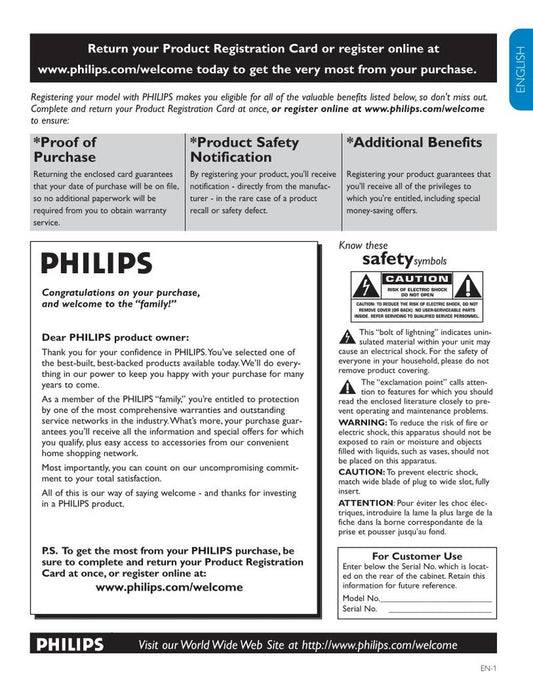 Philips 47MF437B 47MF437B/37 50PFP5332D/37E TV Operating Manual