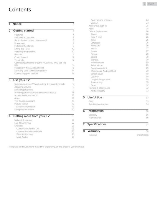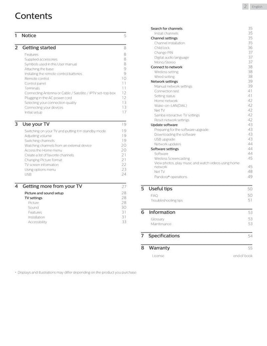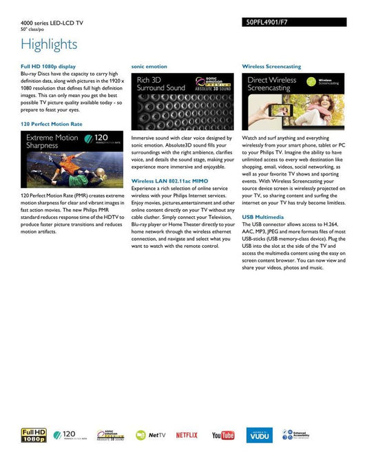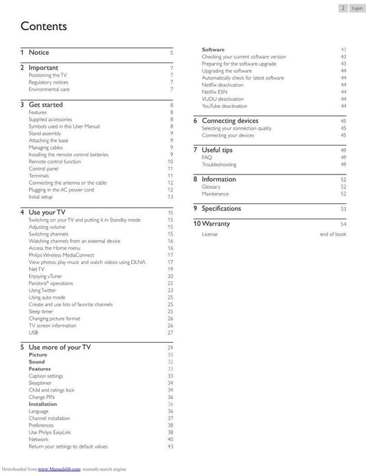Philips 42TA648BX 42TA648BX/F7 47TA648BX TV Operating Manual