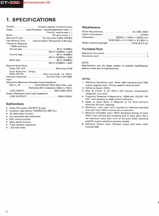 Pioneer CT-330 Stereo Cassette Tape Deck Service Manual (Pages: 31)
