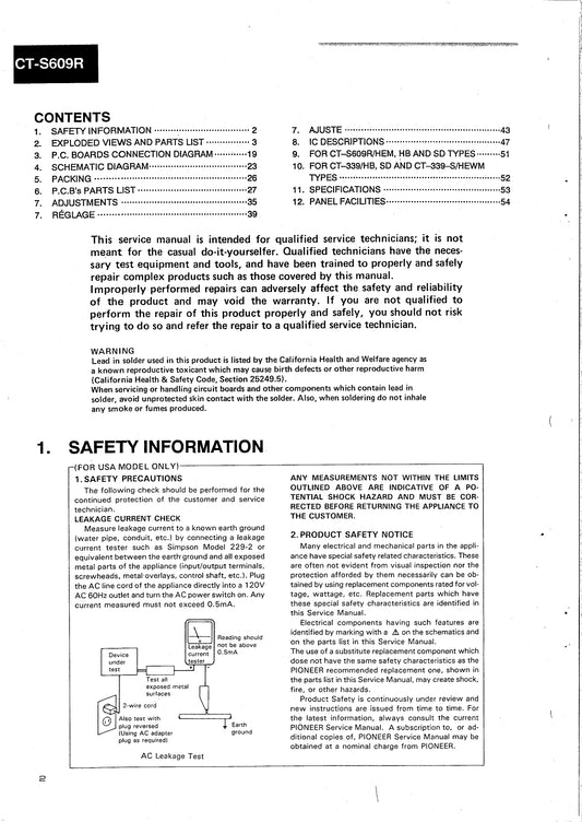 Pioneer CT-339, CT-339-S & CT-S609R Cassette Deck Service Manual (Pages: 47)
