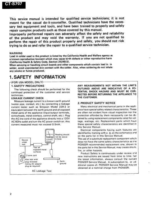 Pioneer CT-656II, CT-656II-S & CT-S707 Cassette Deck Service Manual (Pages: 30)